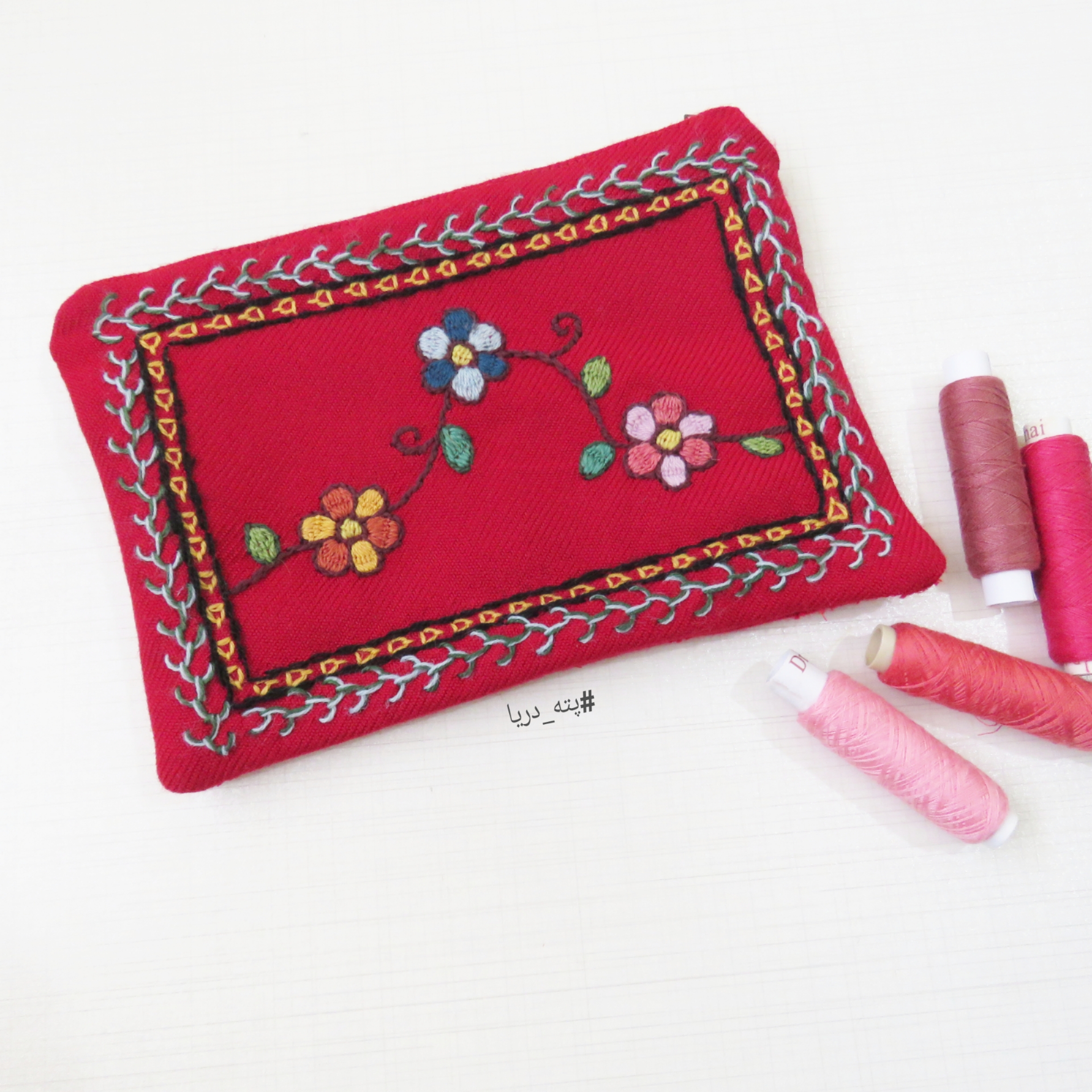 اندازه ۱۹ در ۱۲ سانتیمتر، دست دوز،با آستری، زیپدار، مناسب برای استفاده به عنوان جامدادی یا جای لوازم آرایش،برند پته دریا