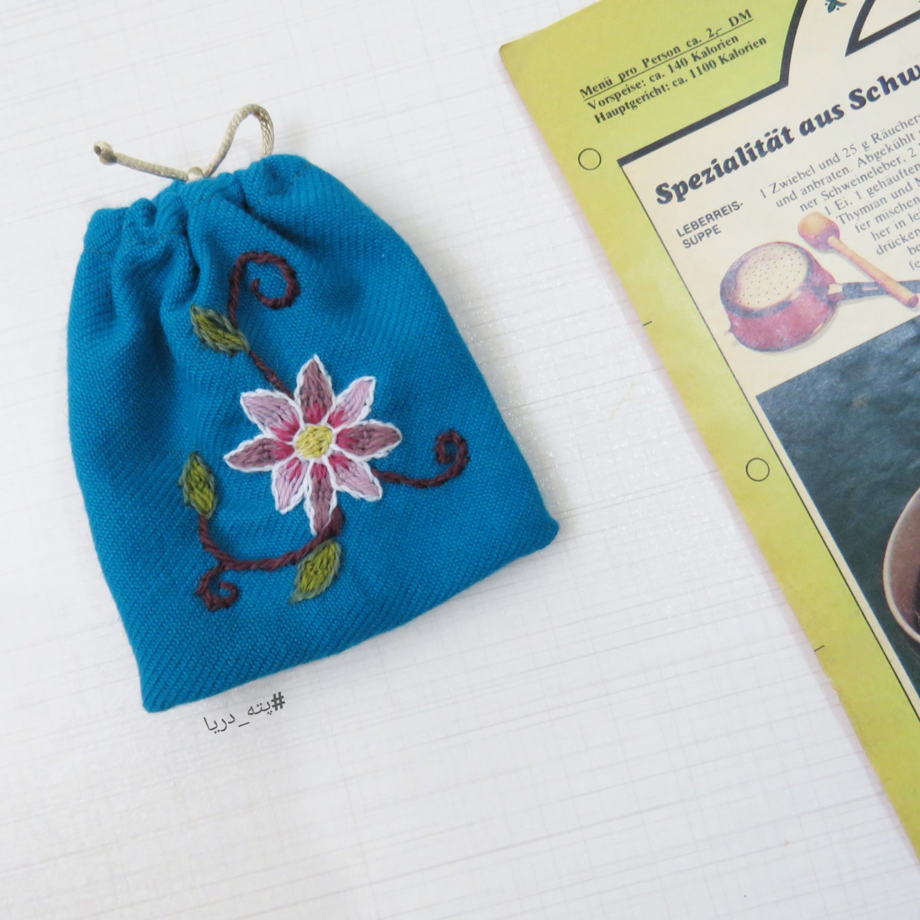 اندازه ۹.۵ در ۱۰.۵ سانتیمتر،دست دوز، استفاده به عنوان کیسه گیفت و هدیه،برند پته دریا