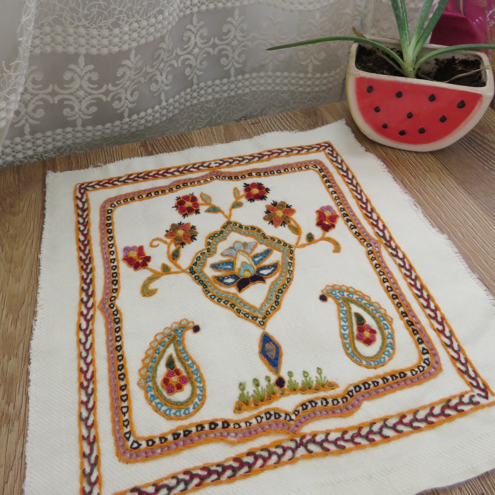 اندازه ۲۷ در ۲۷ سانتیمتر، دست دوز، بدون آستری،مناسب برای تابلو و استفاده به عنوان رومیزی،برند پته دریا،قابل سفارش در سایز مختلف یا تعداد بیشتر