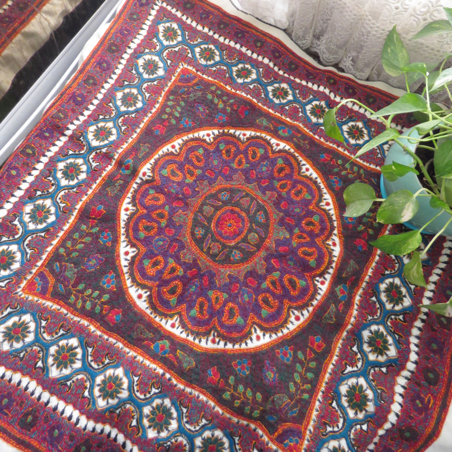 حدود ۹۴ سانتیمتر کل پارچه،رومیزی بزرگ پته دوزی،بسیار باکیفیت و پُرکار